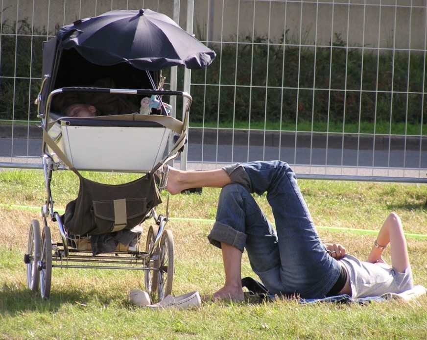 - Не выходите на прогулку в самое пекло, с 12.00 до 16.00. Первая прогулка с новорожденным ребенком летом должна состояться рано утром или вечером, при этом захватите с собой пару пеленок – тонкую и фланелевую. Если подует ветерок, вы накроете чадо и позволите ему поспать подольше.