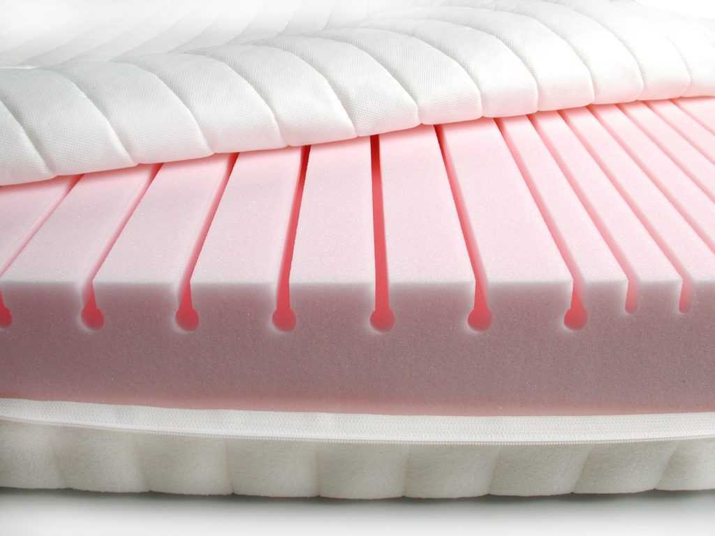 Пенопоулиретан – это последнее поколение наполнителей, представляющее собой поролон с различными добавками. Несмотря на свою синтетическую природу, не вызывает аллергии у новорождённых. Обладает достаточной долговечностью, не слишком дорог в цене, но очень капризно относится к воздействию влаги, бывает несколько уровней жесткости, считается ортопедическим, очень эластичен, имеет несколько слоев.