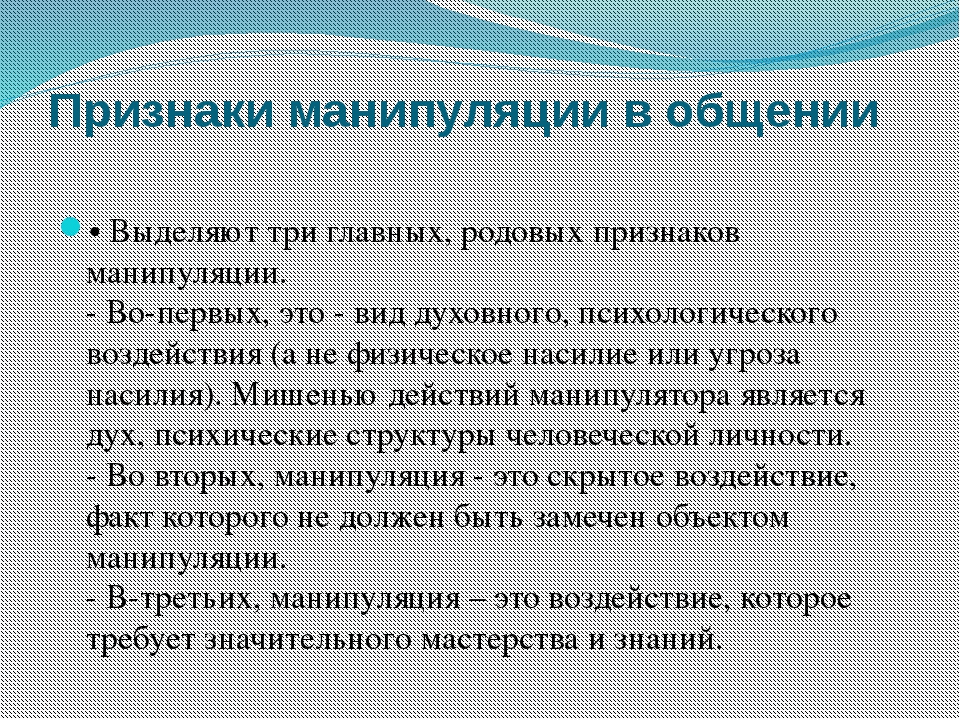 Есть и другие возможные признаки, позволяющие распознать манипуляцию: