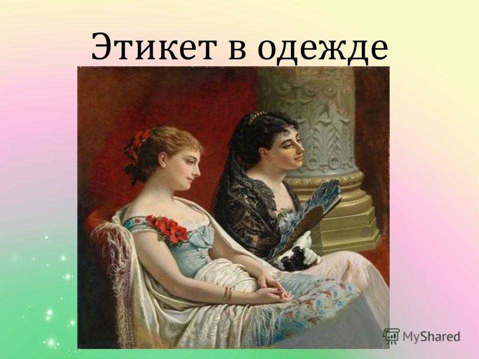 Этикет — правила поведения людей в обществе. Он состоит из множества разных нюансов, отражает культурное развитие общества. Первые своды правил поведения в обществе были введены еще во времена Людовига XIV во Франции. Они были достаточно сложные и содержали множество несущественных деталей. С развитием общества большинство из них видоизменились, стали проще, но несут на себе все тот же посыл соответствия стандарту культурного человека.