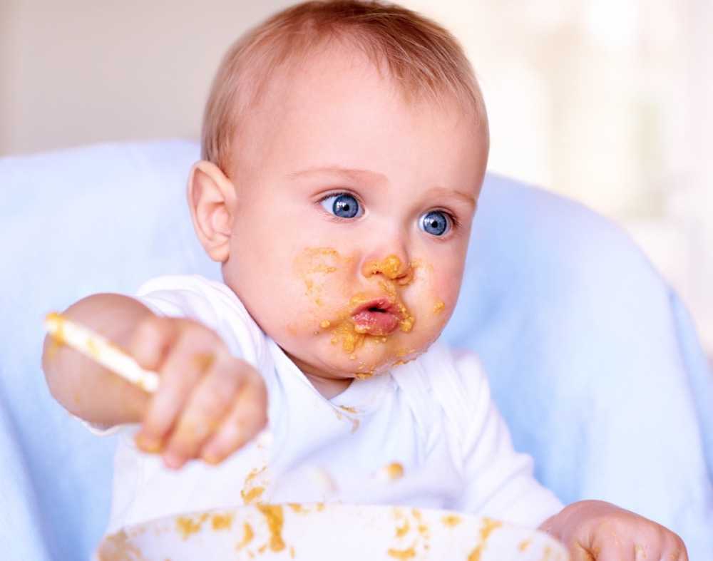 Приучая ребенка к самостоятельному питанию, лучше выбирать продукты пюреобразной консистенции.