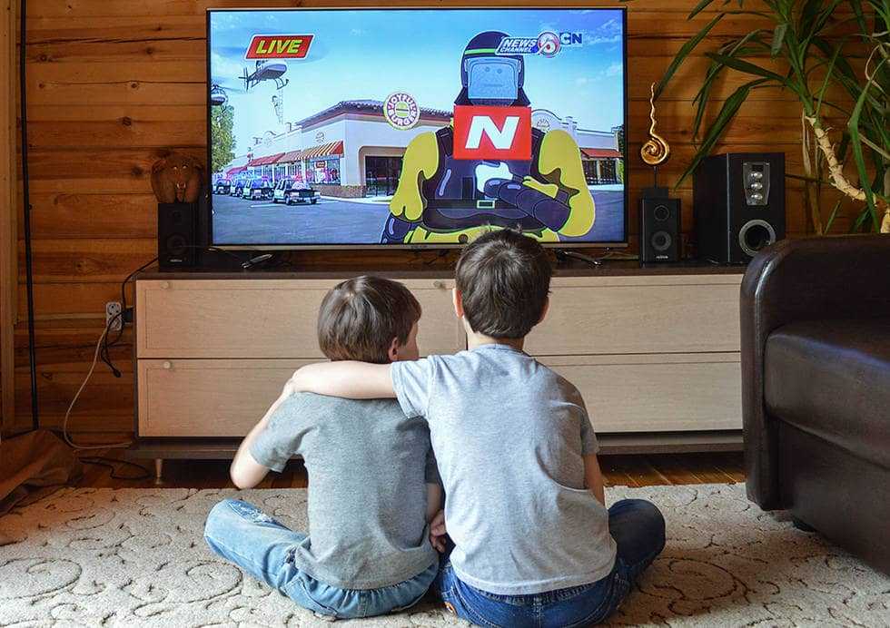 Дети находится очень близко от телевизора