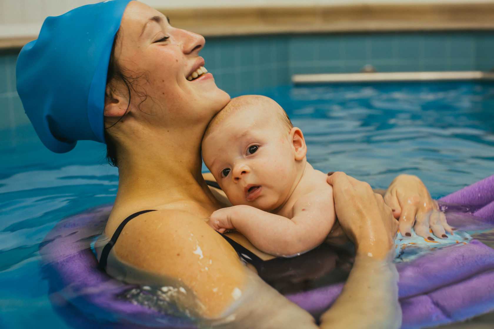 - Комфортная температура воды на первых занятиях — 37 – 37,5 градусов, с понижением ее до конца первого месяца плавания на 3 градуса, а третьего — еще на 2. Для тех, кто посмелее: пожалуйста, помните, что температура не должна опускаться ниже 28 градусов — в этом случае речь идет уже о закаливании.