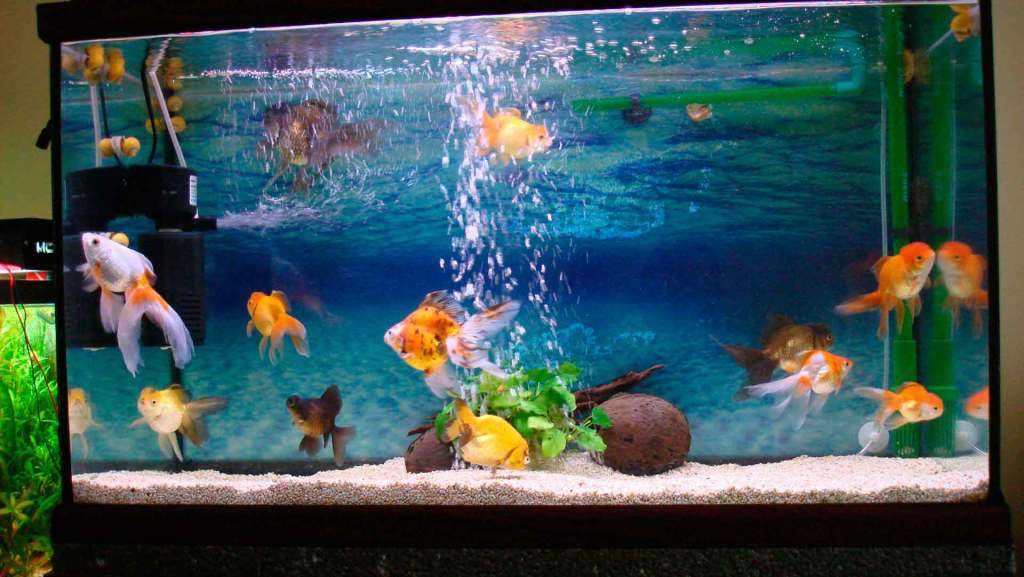 Все золотые рыбки имеют крупные размеры тела, а также любят плавать небольшими группами, стаями. Исходя из этих фактов, и стоит подбирать подходящий вместительный аквариум.