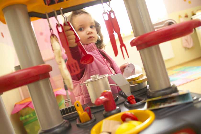 Аксессуары – яркие и понятные крохе. Мы склонны рекомендовать деревянные модели, поскольку это надежный и экологичный материал. Например, «Деревянная кухня «Дези», DJECO». Или пластиковые, но с элементами не только сюжетной, но и развивающей игры (например, с элементами сортера, чтобы попутно развивать еще и логику, и цветовое восприятие, и мелкую моторику). Здесь интересным вариантом может стать «Игрушечная развивающая кухня, LITTLE TIKES».