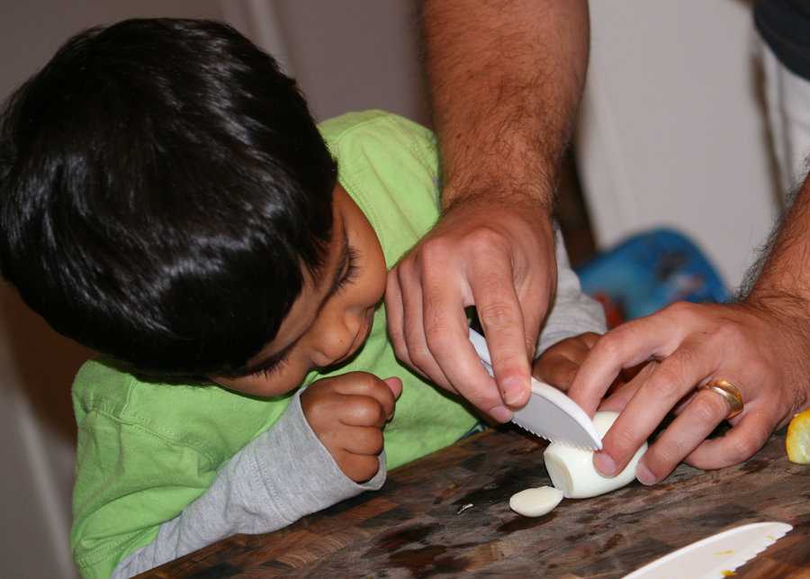 Помните о безопасности. Научите ребенка, как правильно держать ручку ножа, как правильно передавать нож, куда и как положить нож после использования.