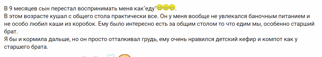 Прежде всего, надо адекватно оценить состояние малыша, чтобы понять, действительно ли он готов к переходу на взрослую пищу. В пользу того, что отказ от маминого молока пройдет относительно безболезненно, говорит следующее: