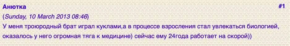Как можно видеть, игры в куклы у мальчиков вовсе не являются поводом для переживаний или паники.