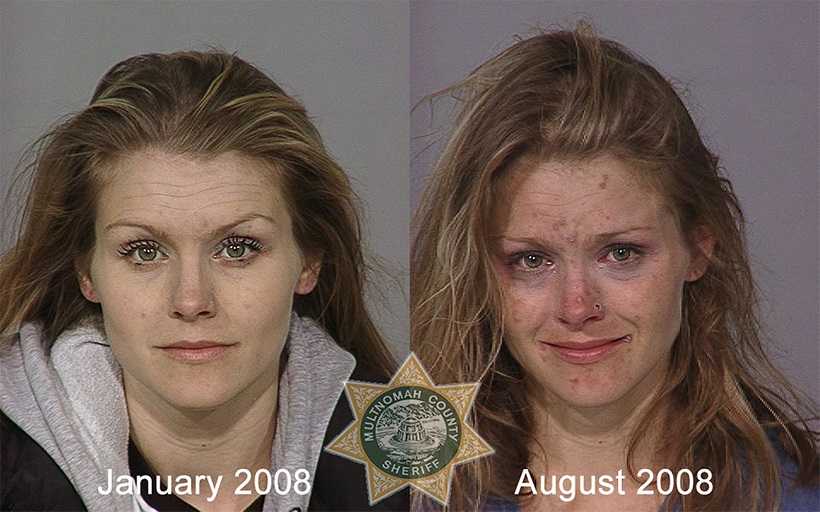 За 8 месяцев употребления метамфетамина здоровую кожу девушки покрыли угри и гнойники, а под глазами появились мешки и синяки