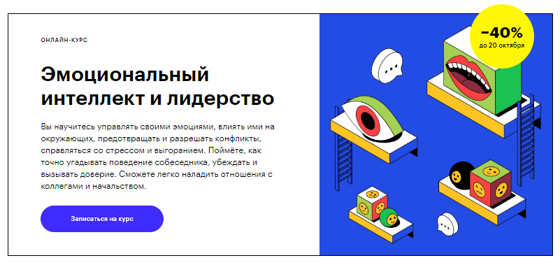 Я была удивлена, когда даже на сайте Нетологии и Скиллбокса нашла курсы по эмоциональному интеллекту. Оказывается, они входят в десятки учебных программ для управленцев, менеджеров и руководителей. Я отобрала для вас самые лучшие материалы – ознакомьтесь.