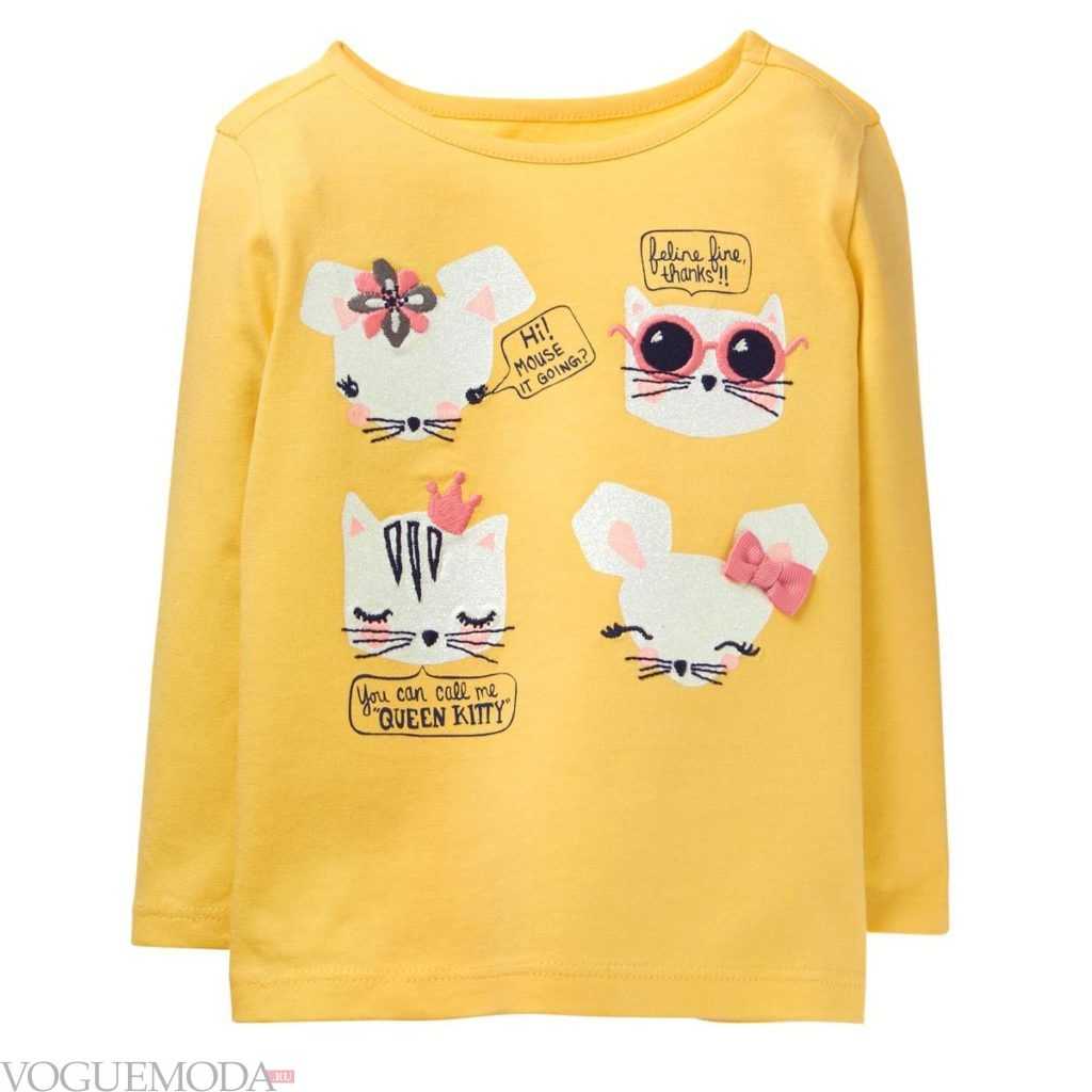 Лонгслив. Очень комфортный и универсальный элемент гардероба. В этом году лонгсливы преимущественно имеют простой крой, но встречаются и модели с оголенными плечами. Чтобы девочке нравилась эта вещь, ее шьют из мягких и приятых тканей, а также украшают самыми яркими принтами.