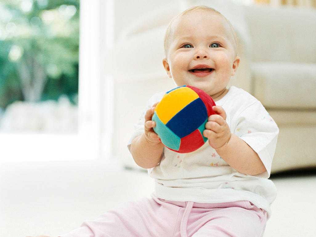 Контрольный показатель для семи месяцев: ребенок уверенно держит игрушку и стучит ей по какой-либо поверхности.