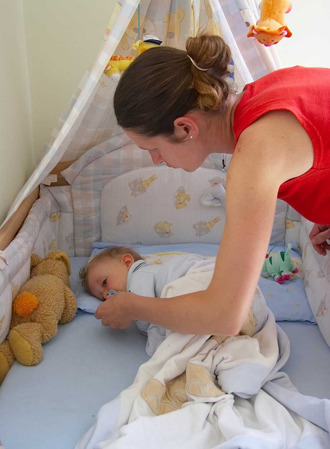 Важно! Перекладывать кроху в кроватку нельзя на вытянутых руках – можно его нечаянно уронить или перевернуть. Во время укладывания малыша можно напевать любимую песенку и разговаривать с ним