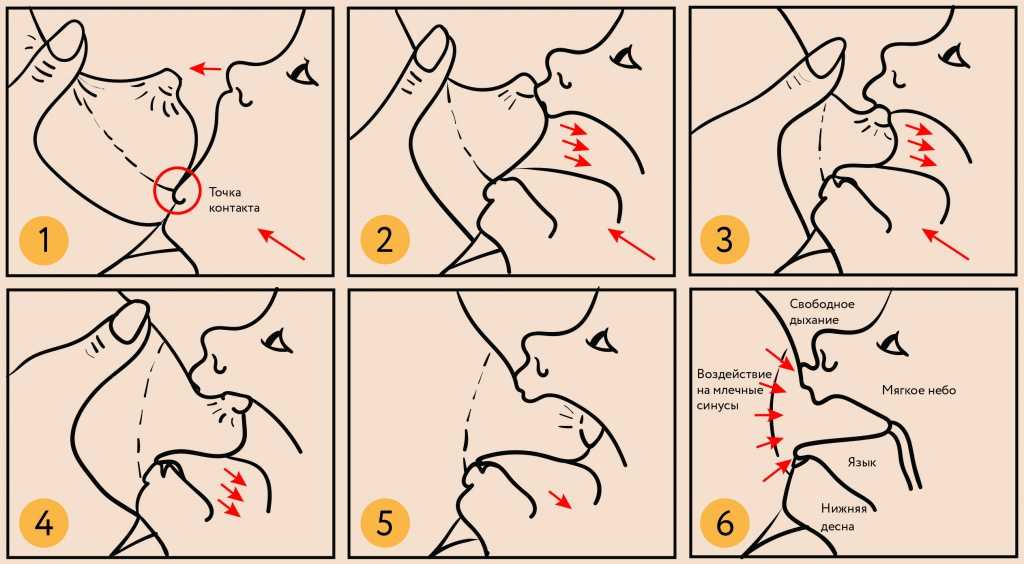 Широко открыть ротик малышу поможет, если мама будет водить соском по щечке или от носика к губкам.