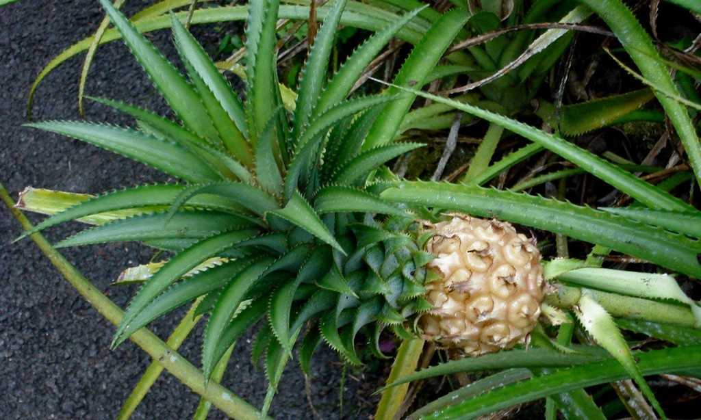 Ананас растет на земле, это кустовое растение. В среднем, растение может быть около 80-90 см в высоту, состоит из розетки листьев, аналогичной верхушке ананаса, по центру этой розетки созревает единственная «шишка» ананаса размерами от 10 до 30 сантиметров, на конце плода есть пучок листьев.
